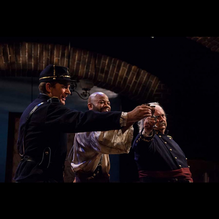 The challenge of costuming was to accurately depict the uniforms of Confederate and Union officers, (Joe Ditmyer, Eric Hoffman, and Jim Sorensen), as well as clothing worn by the escaped slave (Shane Taylor), having traveled for miles on foot to reach the fort to see General Butler. (Eric Hoffman)